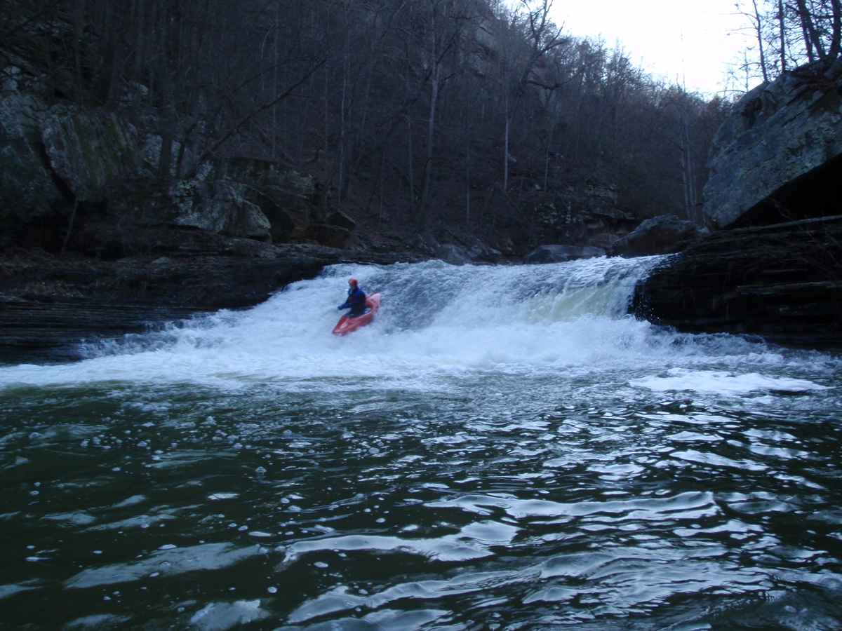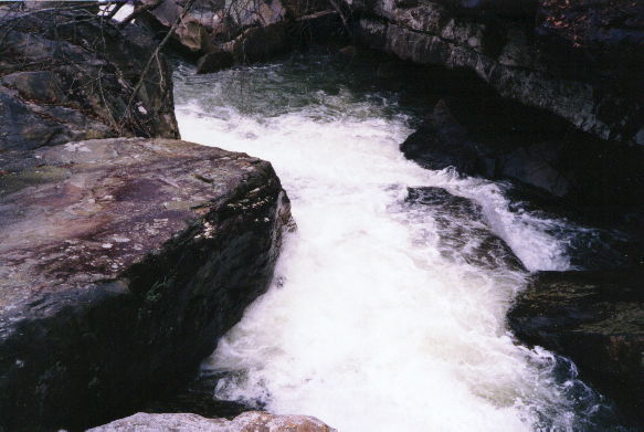 The first drop is the easiest on the river. The second rapid is called two out of three because if you go left, you may find a pin spot. In fact, this was the exact ratio when we ran left one time. So I like right, even though it is very tight and likes to collect trees. There is a short warmup section of III+/IV-, then things get pretty steep. Soon you will see the top of a shallow slide, which leads into a big slide best run center to slightly left of center. The first time you run it, as you crest the big slide, you will get a rush. Gorilla Constrictor follows the pool after the big slide. You don't want me of all people to tell you how to run GC - if you are worthy, you'll figure it out.