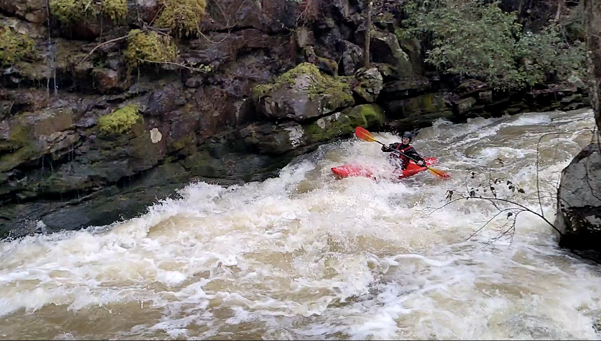 Another new run in with new friends, Jason and Daniel. We put on at 2pm Friday. The run was very short. It seemed like we were at the first of the two more difficult rapids in just a few minutes. Since the bottom could not be seen from the top we took a look to verify the best line and no wood obstructions. The first we entered middle left and ran left through the bottom two drops. Fairly straightforward Class 3+. The right side looked to have some pin potential so we chose to avoid it at this level.