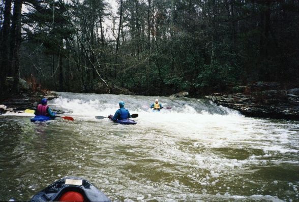 Good carnage can be great carnage if there are famous last words. Shoal Creek saved the best for last. I was sitting in the "eddy of last resort" just above the last drop at the confluence with Scarham Creek, when Winfred Stayton cruised up. I asked if he was going to run the last drop or take out. He said, "I think I'll take out here." I turned around just in time to see him running the drop backwards and upside down. "Johnny on the spot" Reynolds was again there to pick up the pieces.